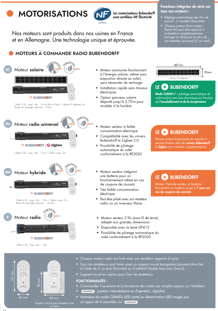 - Radio Bubendorff Universel: le plus standard des volets, simple, économique, compatible avec pratiquement toutes les domotiques du marché.